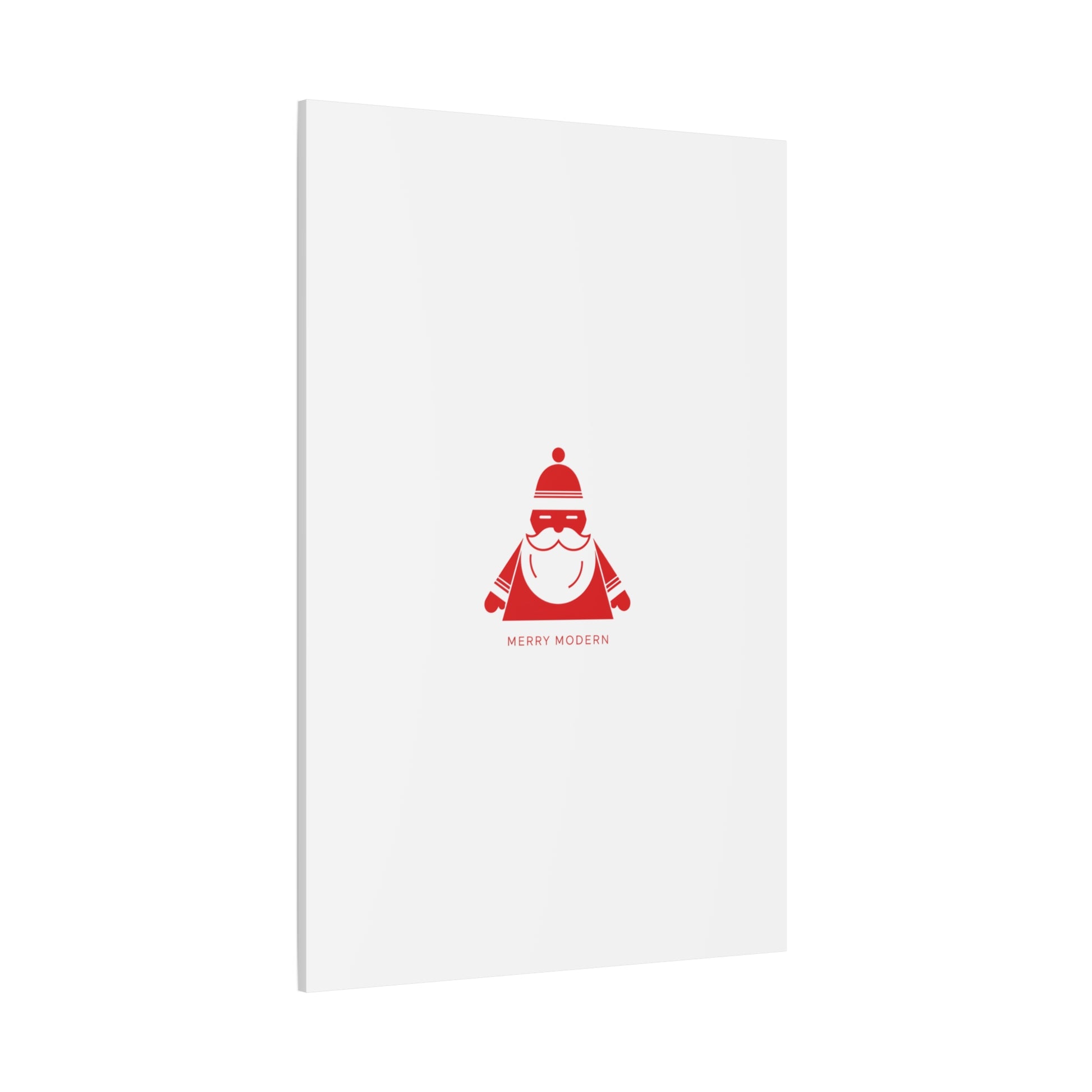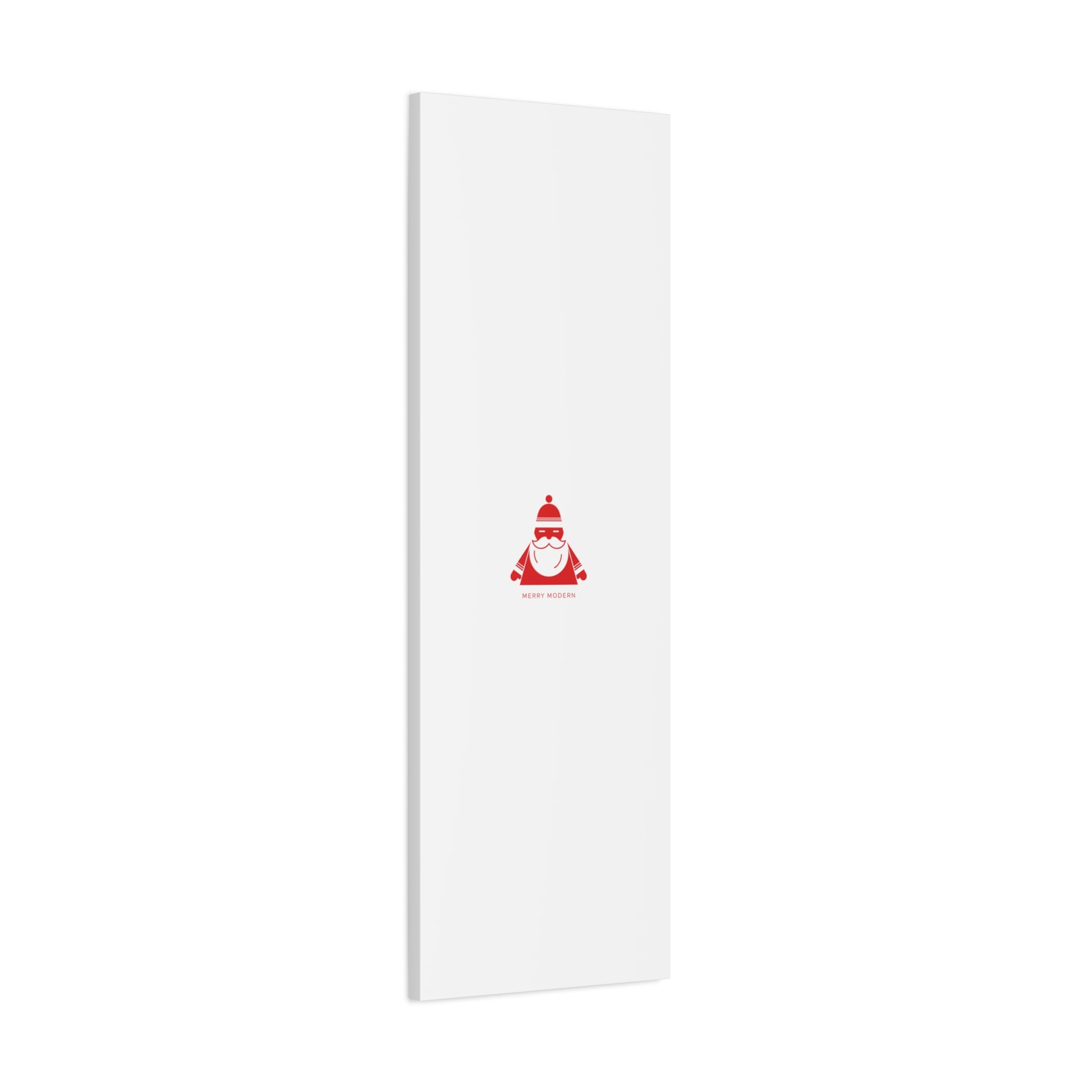 Minimal, geometric Santa rendered in a crisp red-and-white palette for a restrained seasonal accent. The artwork pares the figure down to simple shapes and clean lines—a beanie, triangular coat, and stylized beard—so it reads as a modern Santa motif that fits Scandinavian and urban minimalist decor. On stretched matte canvas, the small centered composition leaves plenty of negative space for a quiet, contemporary holiday touch that complements neutral interiors and modern shelving or wall groupings.